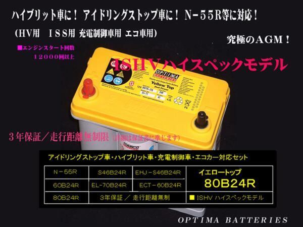 世界NO.1のAGMバッテリー!オプティマ 80B24R/YTB24R1イエロートップです。