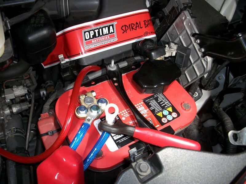 3分岐仕様のバッテリーターミナルのプラスターミナルとマイナスターミナル