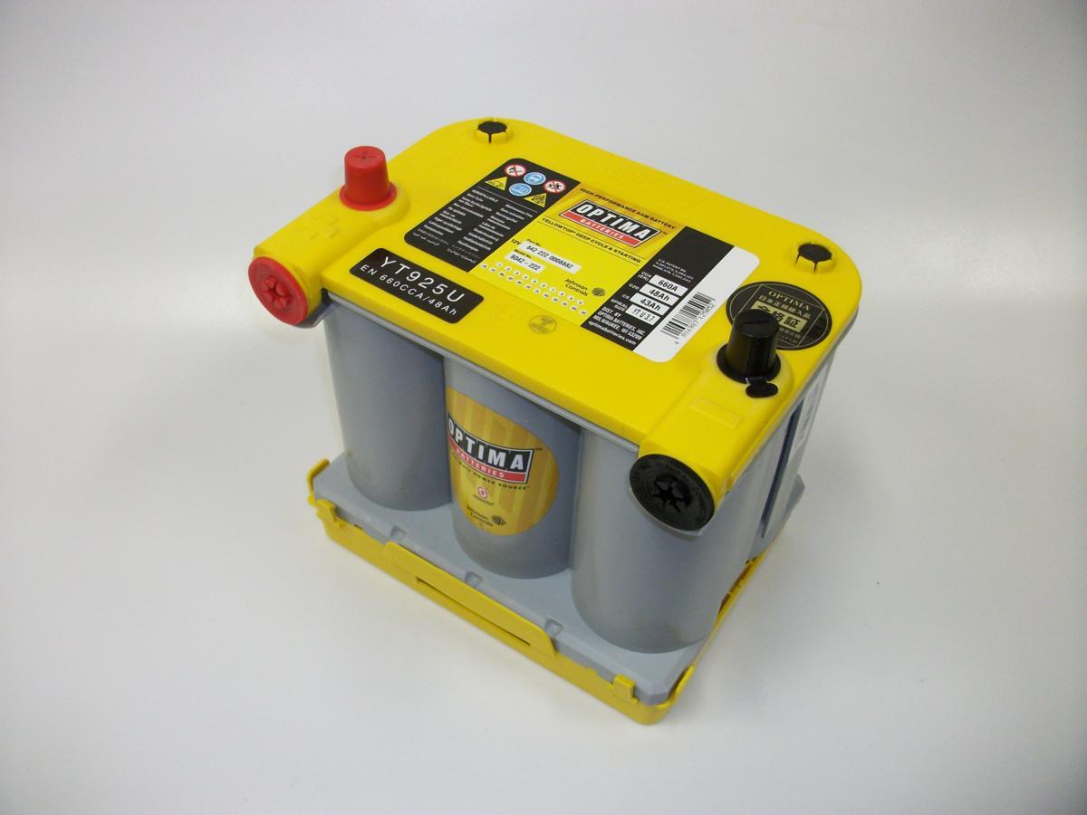 世界NO.1のAGMバッテリー!オプティマ YT925Uにハイトアダプターをセットしたオプティマ 105D23RイエローKITです。